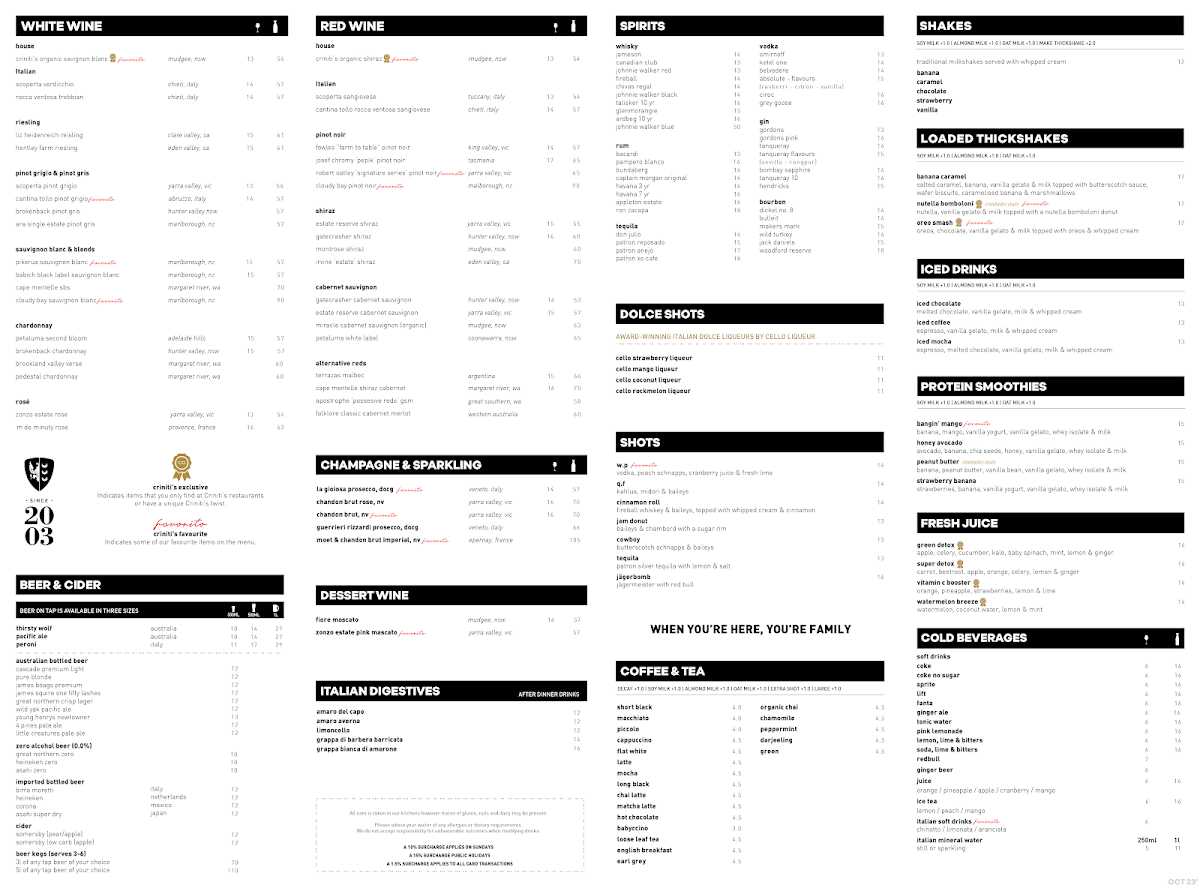 Criniti's Carlton offers a vibrant Italian dining experience nestled in the heart of Carlton, Victoria. Their menu shines with authentic starters like the Mortadella De Lucio, woodfired Bruschetta with fresh tomato and balsamic glaze, and the indulgent Bruschetta Prosciutto topped with buffalo ricotta. For mains, Criniti's presents classic Italian flavors with dishes such as the rich Saltimbocca layered with sage and prosciutto, the hearty Funghi with sautéed mushrooms in white wine cream, and the versatile Parmigiana featuring chargrilled eggplant and melted mozzarella.